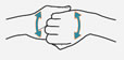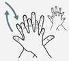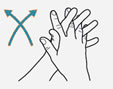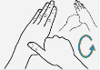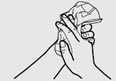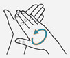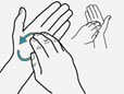 Frotar la punta de los dedos de la mano derecha contra la palma de la mano izquierda, haciendo un movimiento de rotación. Después, intercambiar las manos. (6 segundos) |